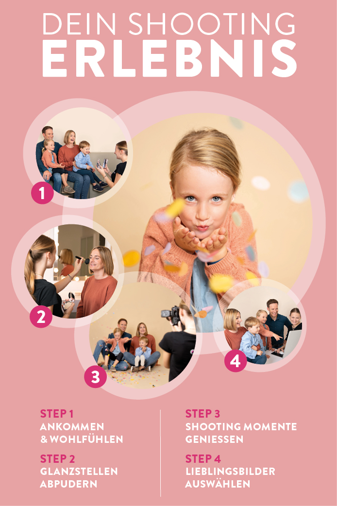 *Maximal ein Gutschein pro Person als Rabatt auf den Shooting Basispreis einlösbar. Der Gutschein kann weder ausgezahlt, noch mit anderen Sonderaktionen oder Angeboten kombiniert werden. Der Gutschein ist nicht einlösbar für Pass- und Bewerbungsbilder sowie Hochzeitsfotos. Der Gutschein ist bis zum angegebenen Datum gültig.